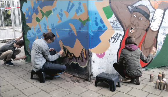Jongeren uit Groot Driene vroegen om grafiti op de JOP (Jongeren Ontmoetings Plek). Skillz voerde het uit, dankzij een buurtbon.