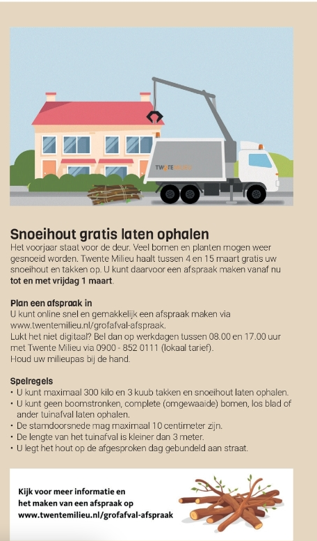 De gemeente stelt het op prijs als u een volle of geblokkeerde container meldt bij Twente Milieu. Dat kan via hun gratis app, via www.twentemilieu.nl of telefonisch via 0900 – 8520111.